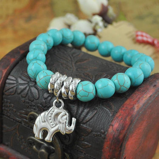 Classic Ethnic Turquoise Silver Elephant Bracelets