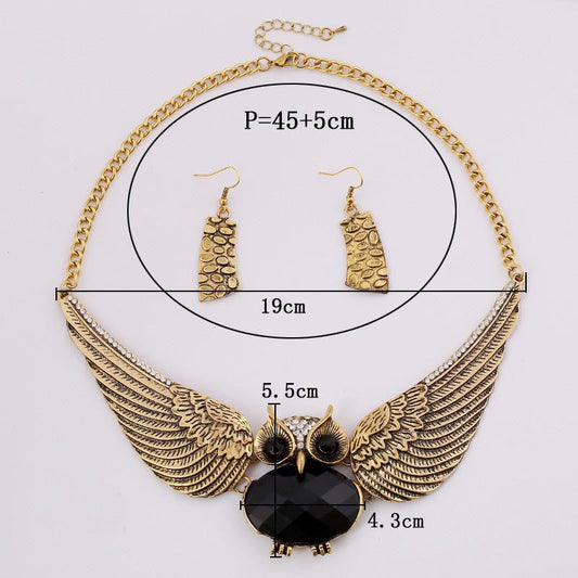 Classic Romantic The Owl Short Big Crystal Chain Link Chokers Necklaces & Earrings