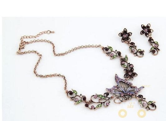 Crystal Flower Butterfly Set ( Earrings &Necklace )