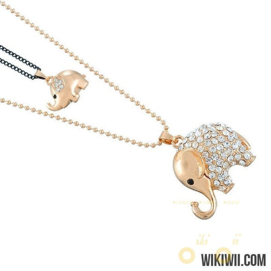 Cute Elephant Mom&Baby Pendant Necklace Light Golden Two Layers