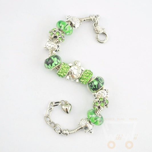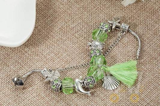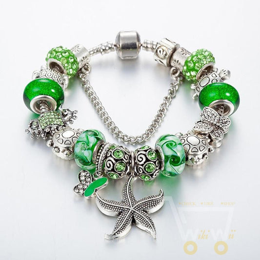 Green Beads Starfish /Butterfly /Turtle Charm Bracelet