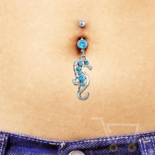 Medical Steel Crystal Rhinestone Sea Horse Charm Belly Button