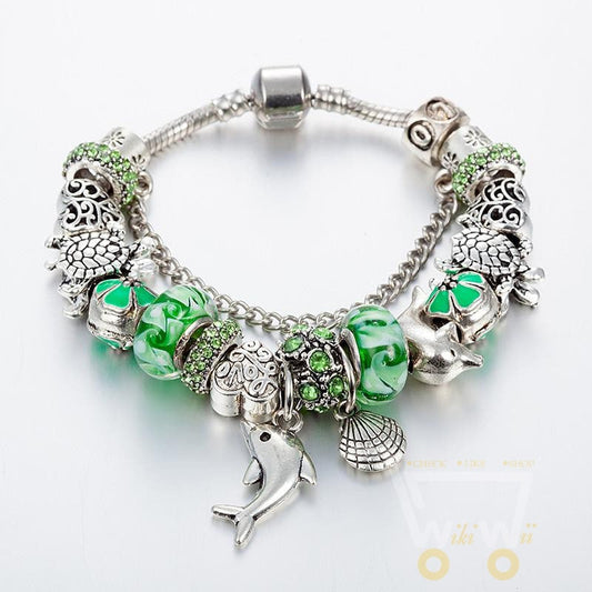 New Design Dolphins/Turtle Charm Green Glass Beads Bracelet