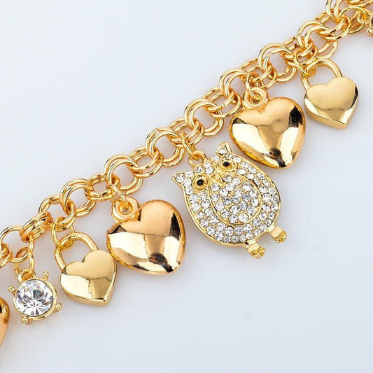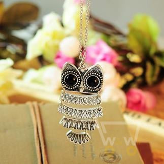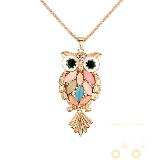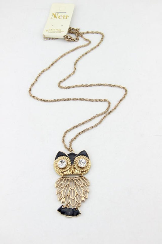 Owl Necklace Long Gold color Chain with Rhinestone Bird Necklaces