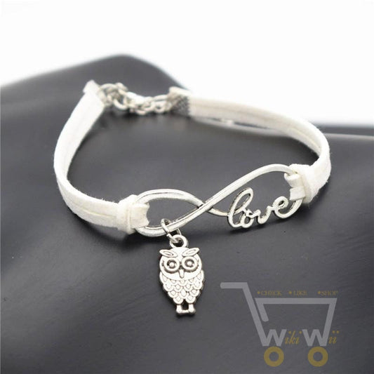 owl Multi-color woven leather bracelet with wings ( infinity bracelet )