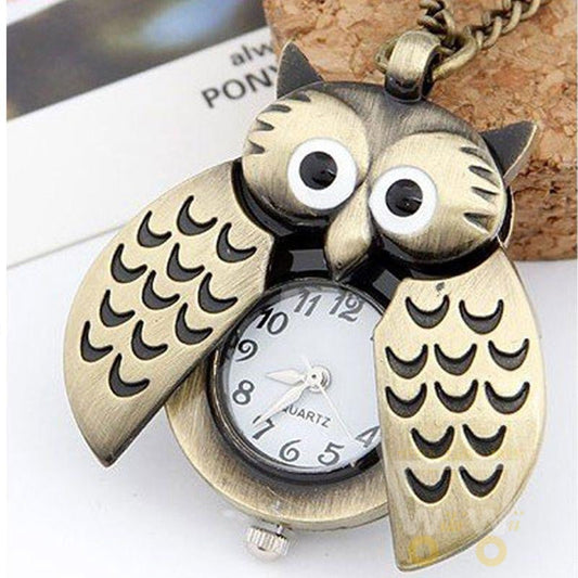 Owl Necklace Flag Bronze Bird Pocket Clock