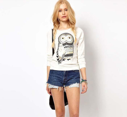 Owl Shirts Blouses Tops White Black / Red Plus size