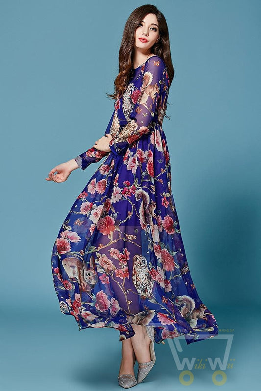 Owl Print Dress Ladies Elegant Party Evening Mini Dress