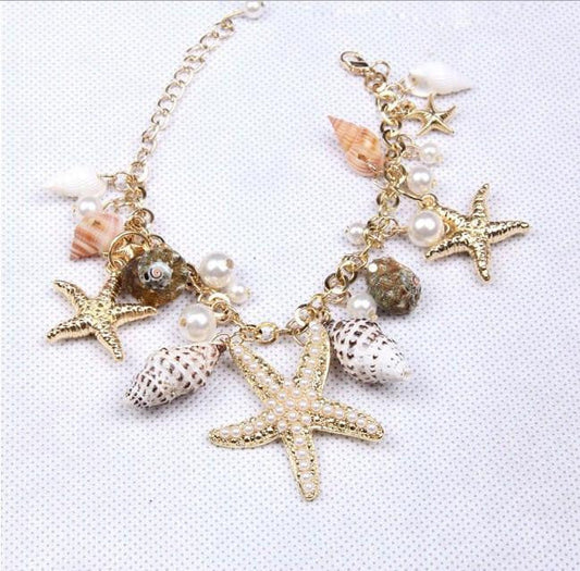 Sea Starfish Shell Conch Pearl Ball Beach Bracelet