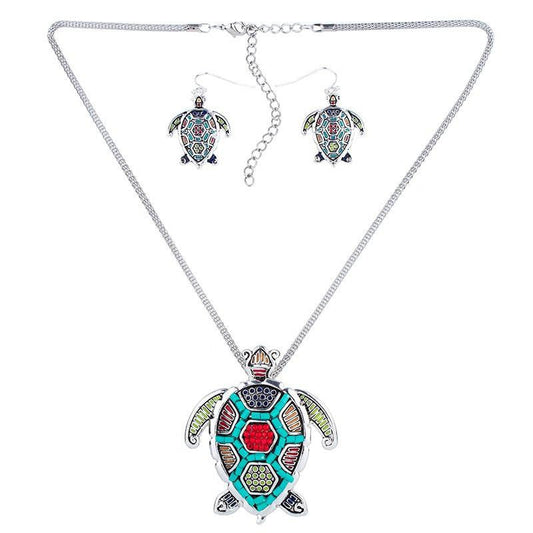 Sea Turtle Necklace Pendant with Bead Chain (Temperature Change Color )
