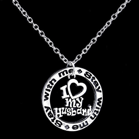 Silver Plated" I Love My Husband Stay With Me " Pendant Necklace