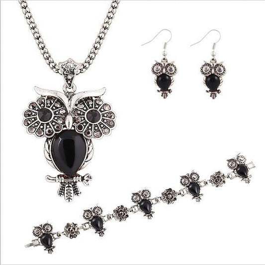 Silver Retro Turquoise Pendant Owl Necklace , Bracelet , Earning