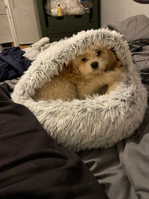 Die geschlossene Höhle schafft einen sicheren Rückzugsort. Hunde atmen ruhiger, hören auf zu kreisen und schlafen schneller ein, sodass Sie wieder durchschlafen und weniger Stress haben.