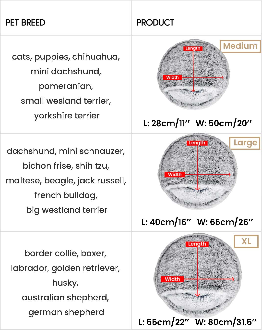 Messen Sie Ihr Tier im Zusammenrollen und gestreckt. Liegt es zwischen zwei Größen, wählen Sie die größere für Bewegungsfreiheit und Spielzeugaufnahme.